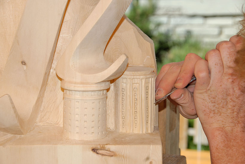 Martedì 2 agosto i tronchi di larice delle montagne olimpiche, alti oltre 3 metri e dal diametro di 90 centimetri, verranno posizionati in via Louset. La prima squadra, capitanata dallo scultore piemontese Dino Damiani con la collaborazione di Carlo Piffer, si metterà subito all'opera per realizzare la prima scultura che ha come soggetto un ciclista impegnato lungo le salite che portano al Colle. In settimana altri scultori si aggregheranno al team Damiani che ultimerà il lavoro per domenica 7 agosto.