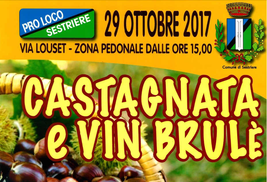 La Pro Loco di Sestriere invita turisti e villeggianti a partecipare numerosi alla Castagnata, con vin brûlé per gli adulti e cioccolata calda e dolci per i bambini, in programma domenica 29 ottobre 2017. Lo staff della Pro Loco Sestriere vi aspetta in via Louset con il cestello delle caldarroste sul fuoco fin dal primo pomeriggio a partire dalle ore 15.00.
