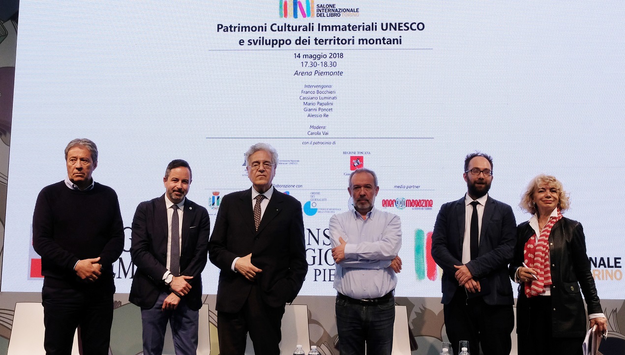 Tra le tantissime iniziative che animano il Salone Internazionale del Libro di Torino, lunedì 14 maggio al Lingotto, presso l'Arena Piemonte, si è svolto un incontro dedicato ai Patrimoni Culturali Immateriali UNESCO e sullo sviluppo dei territori montani. Un momento di riflessione sulla montagna organizzato da Regione Piemonte e dal Consiglio Regionale del Piemonte per approfondire il tema della richiesta di inserimento dell'alpinismo come patrimonio culturale immateriale dell'Unesco assieme a tutto quello che ruota attorno ad esso e all'ambiente alpino. All'incontro, moderato dalla giornalista Caraola Vai, hanno preso parte diversi ospiti, Franco Bochieri, Cassiano Luminati, Mario Papalini, Alessio Re e il vicesindaco di Sestriere Gianni Poncet, in rappresentanza dell'area montana dell'Unione Montana Comuni Olimpici Via Lattea.