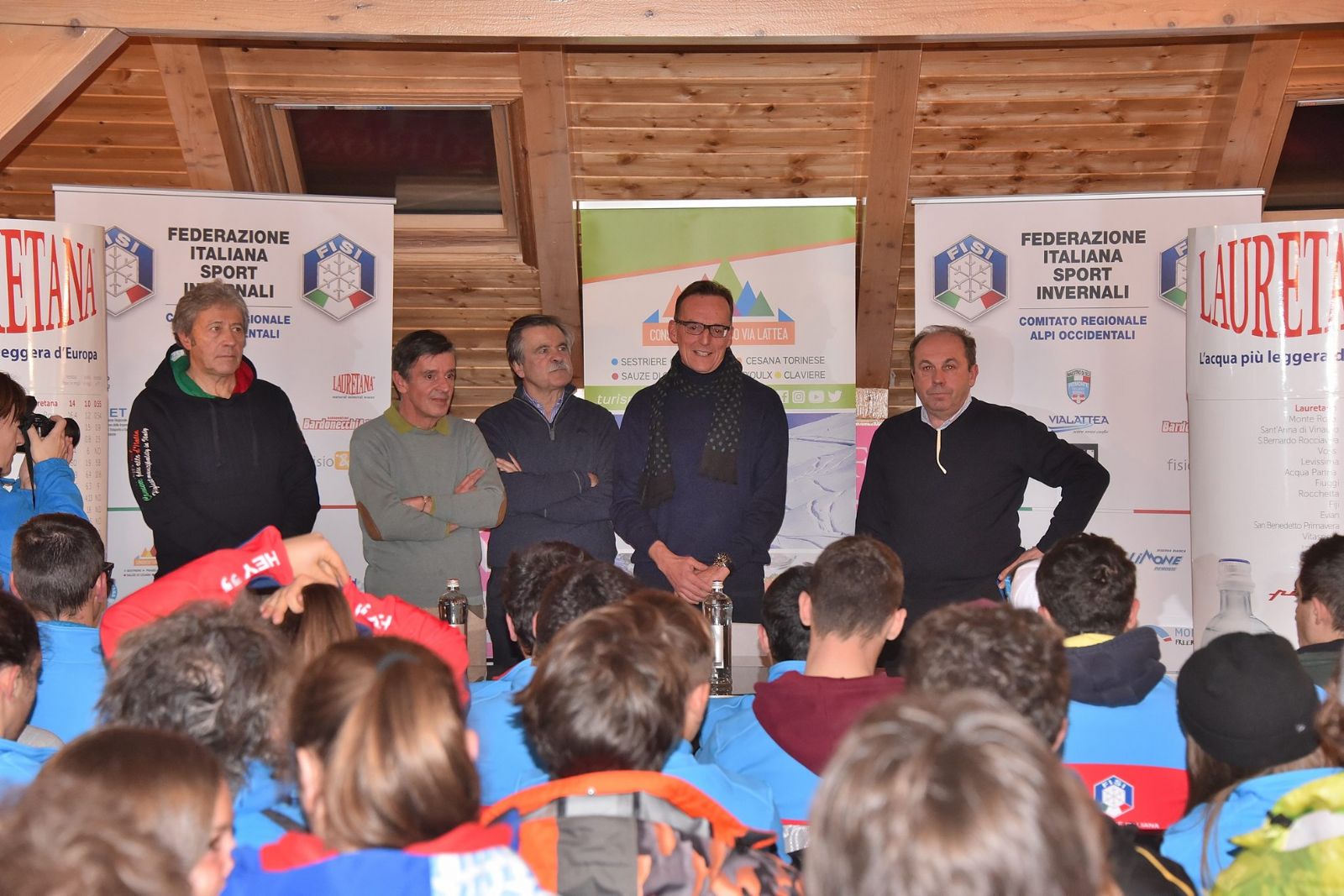 Presenti allenatori, dirigenti Fisi AOC assieme agli amministratori dell'Unione Montana Comuni Olimpici Via Lattea che hanno sottolineato l'importanza di poter contare su un vivaio di giovani campioni del territorio che trovano nello sport una prima palestra di vita capace di formare gli uomini del futuro.