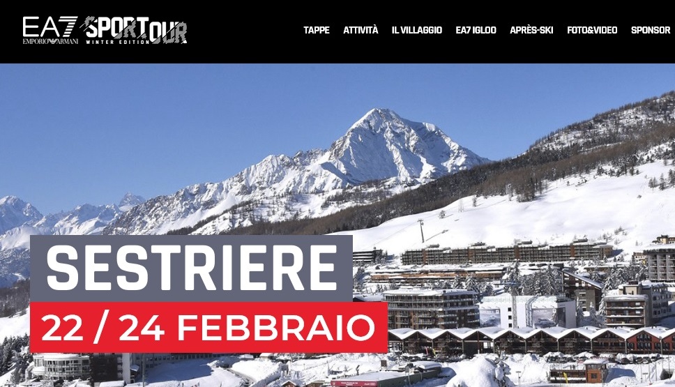 Di seguito il calendario aggiornato: Courmayeur (11 - 13 gennaio); Bormio (18 - 20 gennaio); Corvara (25 - 27 gennaio); Ponte di Legno (8 - 10 febbraio); Anterselva – Valdaora (15 - 17 febbraio); Sestriere (22 - 24 febbraio). Tutte le info sul sito: www.ea7sportour.it