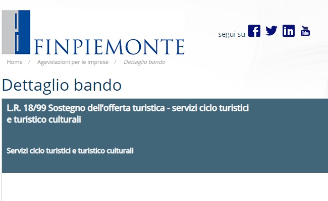 FINPIEMONTE: Bando per contributi a fondo perduto a sostegno di progetti di sviluppo ciclo-turistico e turistico-culturale.