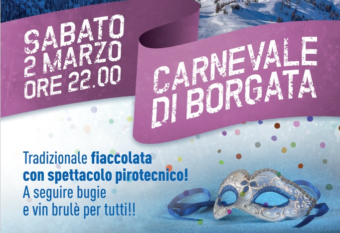 Sabato 2 marzo appuntamneto da non perdere con la tradizionale Fiaccolata delle Scuola Sci Borgata organizzata in collaborazione con il Comune di Sestriere. La partecipazione è gratuita ed è riservata a sciatori da 16 anni in su. Il ritrovo e la consegna delle fiaccole è davanti alla sede della Scuola Sci Borgata da dove partirà un servizio di navetta per salire al Colle del Sestriere. Al termine della fiaccolata verranno distribuite bugie di Carnevale e vin brulè. Prima della fiaccolata, alle 19.00 presso il Bar Ristorante della Scuola Sci Borgata, è un programma un’apericena (a pagamento). Per maggiori informazioni tel. 0122 77497 oppure info@scuolasciborgata.com