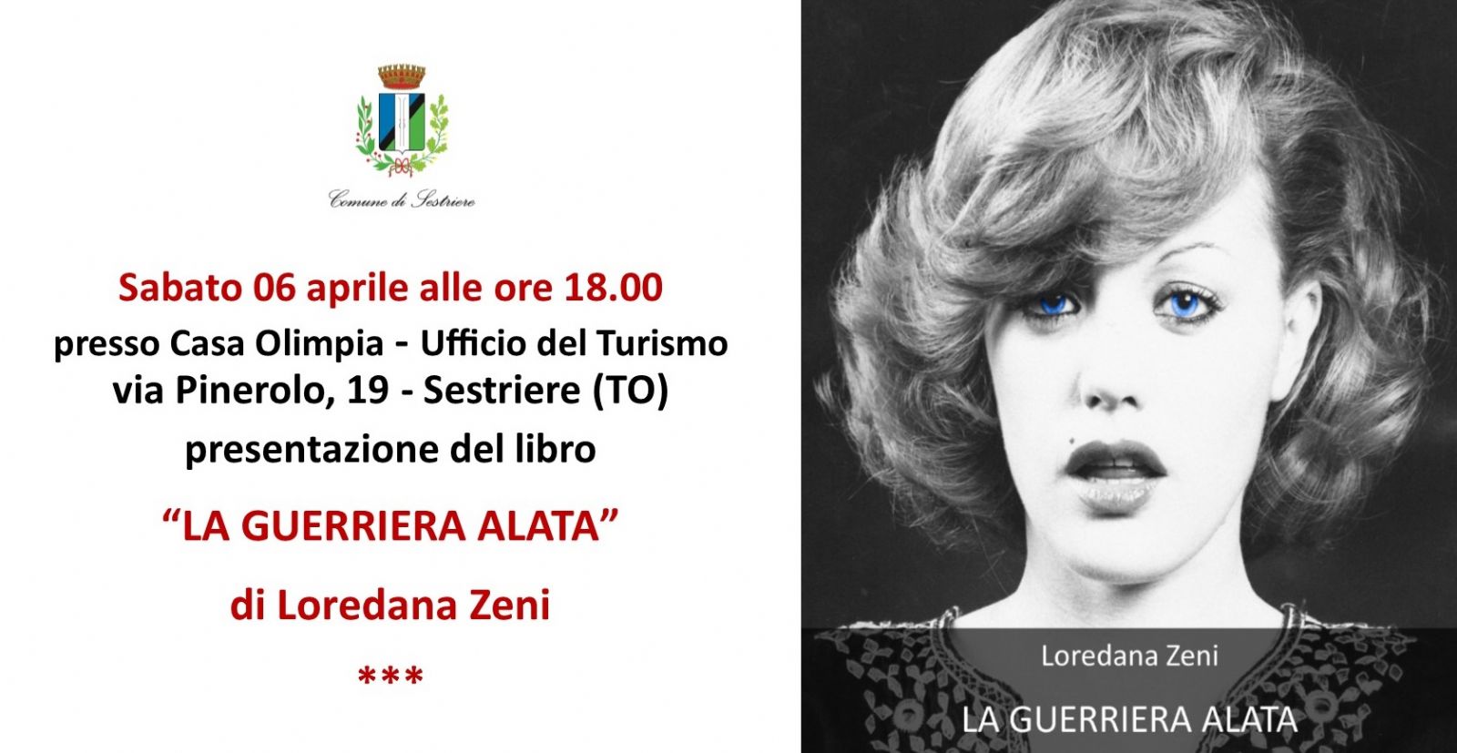 Casa Olimpia Sestriere farà da cornice alla presentazione del libro “La guerriera alata” di Loredana Zeni. L’appuntamento è per sabato 6 aprile alle ore 18.00. In questo libro l’autrice si racconta senza reticenze, senza nascondere nulla, parla della sua vita. Un percorso intenso, che parte dall’infanzia, per narrare del suo lavoro, della malattia, dell’amore. Dei suoi sogni, dei suoi desideri, delle sue illusioni e delle sue delusioni.vLa vita, insomma, in tutte le sue sfaccettature. Loredana Zeni è tenera, dolce, complicata, a volte dura, mai indulgente con sé stessa. In questo libro si scopre un percorso di vita, ci si riconosce nelle stesse emozioni, nelle stesse paure, nelle stesse gioie. Perché Loredana Zeni parla con le emozioni, ed emoziona profondamente, chi legge. Ha lottato per raggiungere i suoi sogni. Ha vinto, ha perso, ha volato ed è caduta. Ma si è sempre rialzata, con coraggio, guardando in faccia ogni cosa, senza paura.vUna guerriera. Una guerriera alata. Ed è questo il titolo del suo libro. Che emoziona e coinvolge profondamente il lettore.