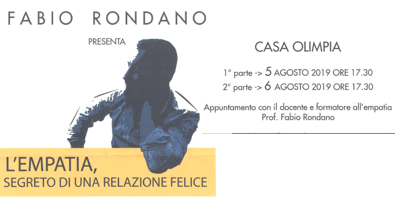 Lunedì 5 e martedì 6 agosto a Casa Olimpia Sestriere, incontro in due parti con il prof. Fabio Rondano, docente e formatore all’empatia che parlerà del segreto per una relazione felice. Entrambi gli appuntamenti avranno inizio alle ore 17.30. Ingresso libero sino ad esaurimento posti.