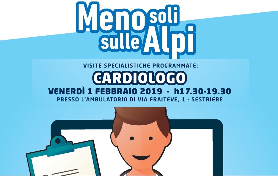 Il prossimo appuntamento, venerdì 1 febbraio 2019, sarà dedicato agli aspetti cardiovascolari. Attraverso una visita cardiologica si permette, a chi vive e lavora a Sestriere, di ottenere un parere qualificato sui percorsi opportuni di prevenzione da adottare qualora esista una familiarità cardiovascolare: genitori e nonni che sono stati soggetti a malattie del cuore; di valutare terapia e prevenzione per chi abbia familiarità o problemi ipertensivi già in atto, anche influenzati dalla quota.