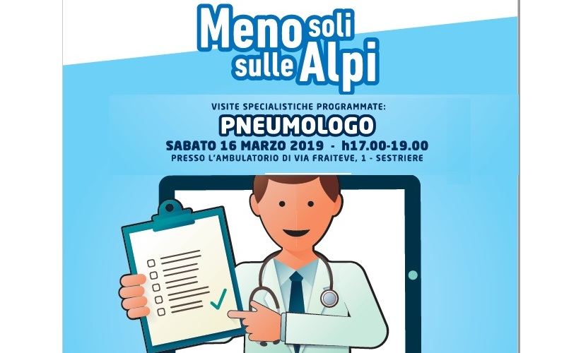 Il progetto “Meno soli sulle Alpi”, dedicato alla prevenzione della salute attraverso consulti con specialisti dei vari rami della medicina presso l’ambulatorio medico di Sestriere, in via Fraiteve 1 (in cima a via Louset).
