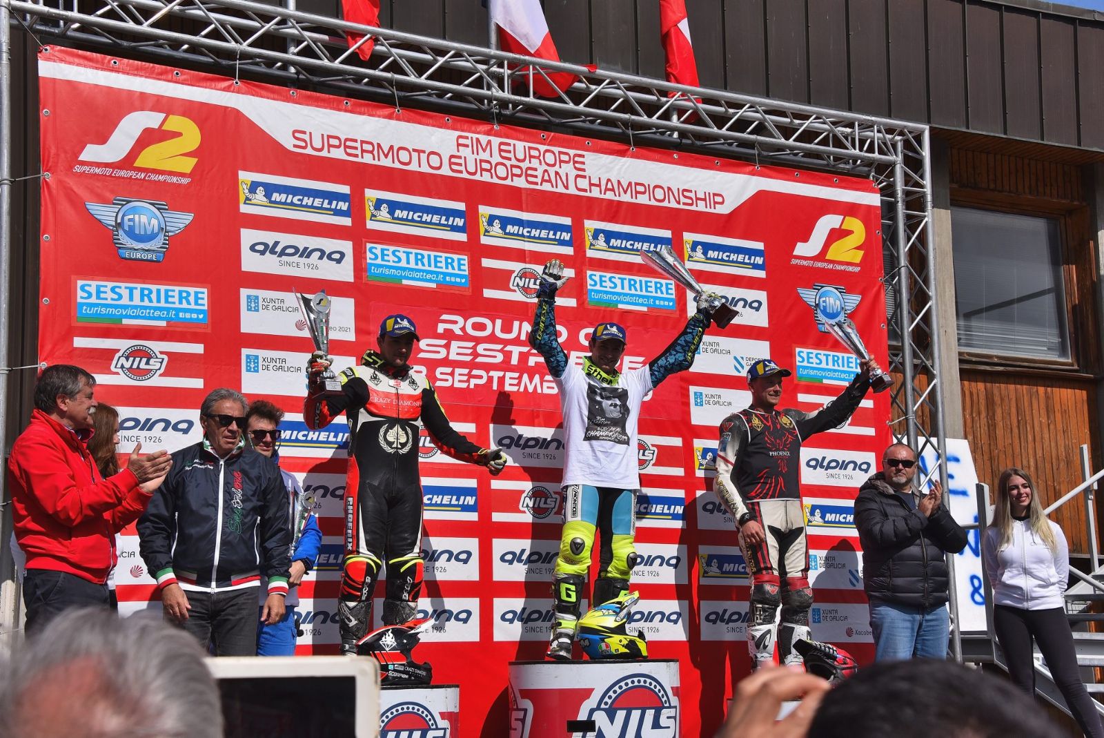 Lo specialista francese del TM Factory Racing, Casa motociclistica italiana con sede a Pesaro, grazie a due manche spettacolari, che lo hanno visto tagliare per primo il traguardo, ha bissato il titolo continentale ottenuto proprio un anno fa sempre a Sestriere. Per lui una stagione da incorniciare con la vittoria della Coppa del Mondo Supermoto, disputatasi su prova unica, che si aggiunge al suo ricco palmares che vanta 6 titoli mondiali e 2 continentali.