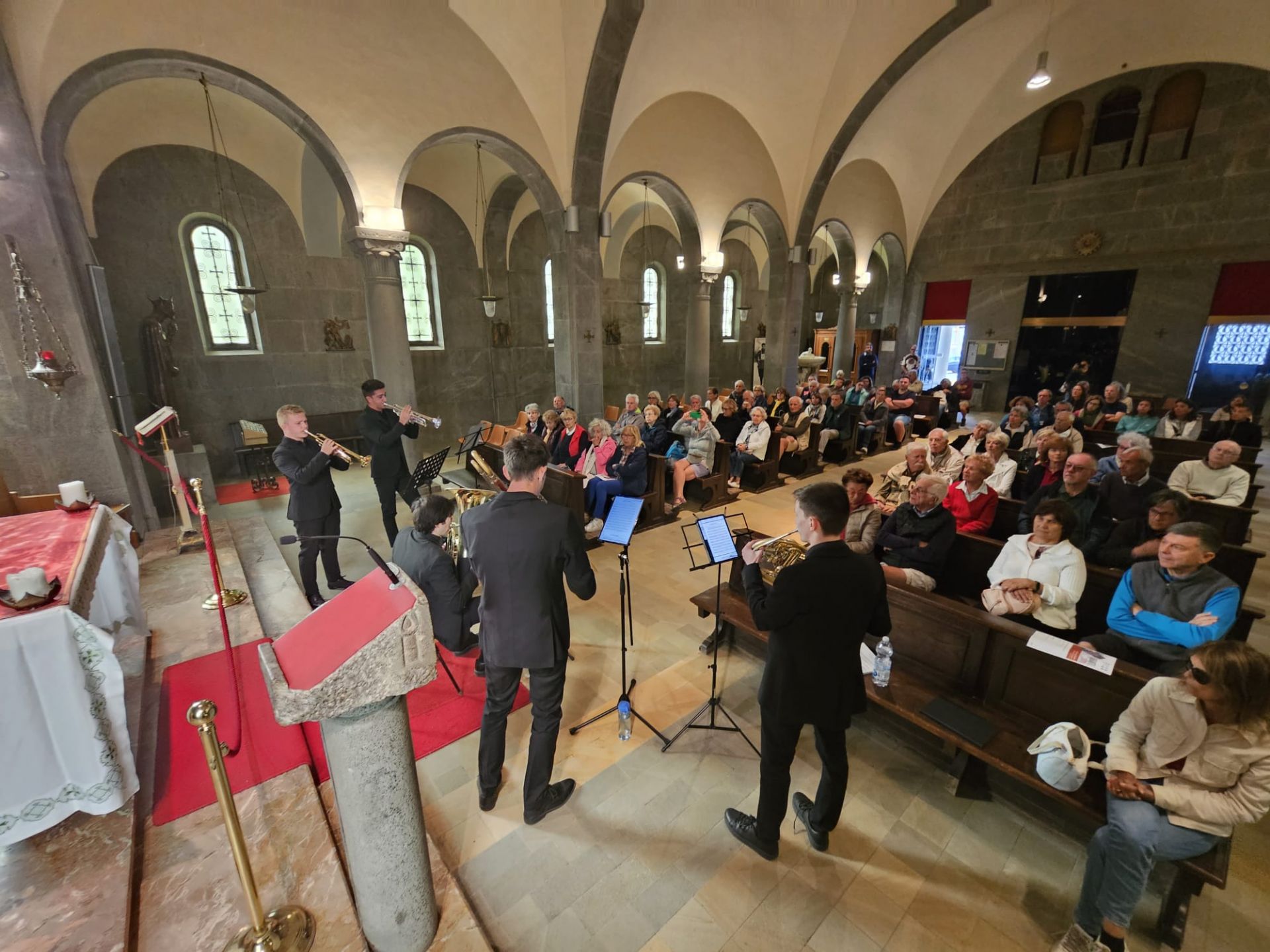 Sestriere: Altenote al Colle alla chiesa Sant’Edoardo - Grande successo martedì 8 agosto a Sestriere per l’appuntamento al Colle della Rassegna Alte Note 2023. Ad esibirsi, con due spettacoli alle 16.30 alle 19.00 presso la Chiesa di Sant’Edoardo, è stato il “Quintetto d’ ottoni di obbiettivo orchestra” accolto dal Vicesindaco di Sestriere, Francesco Rustichelli che ha sottolineato come gli appuntamenti culturali rappresentino una parte sempre più importante dell’offerta turistica di Sestriere. Ad esibirsi sono stati i giovanissimi musicisti della Filarmonica TRT, Alessandro Chiesa, Massimiliano Zanato, Trombe – Michelangelo Lotito Corno – Yannick Valler, Trombone – Ivan de Santo, Tuba, con musiche di Gabrieli, Gastaldi, Verdi, Debussy, Verdi.