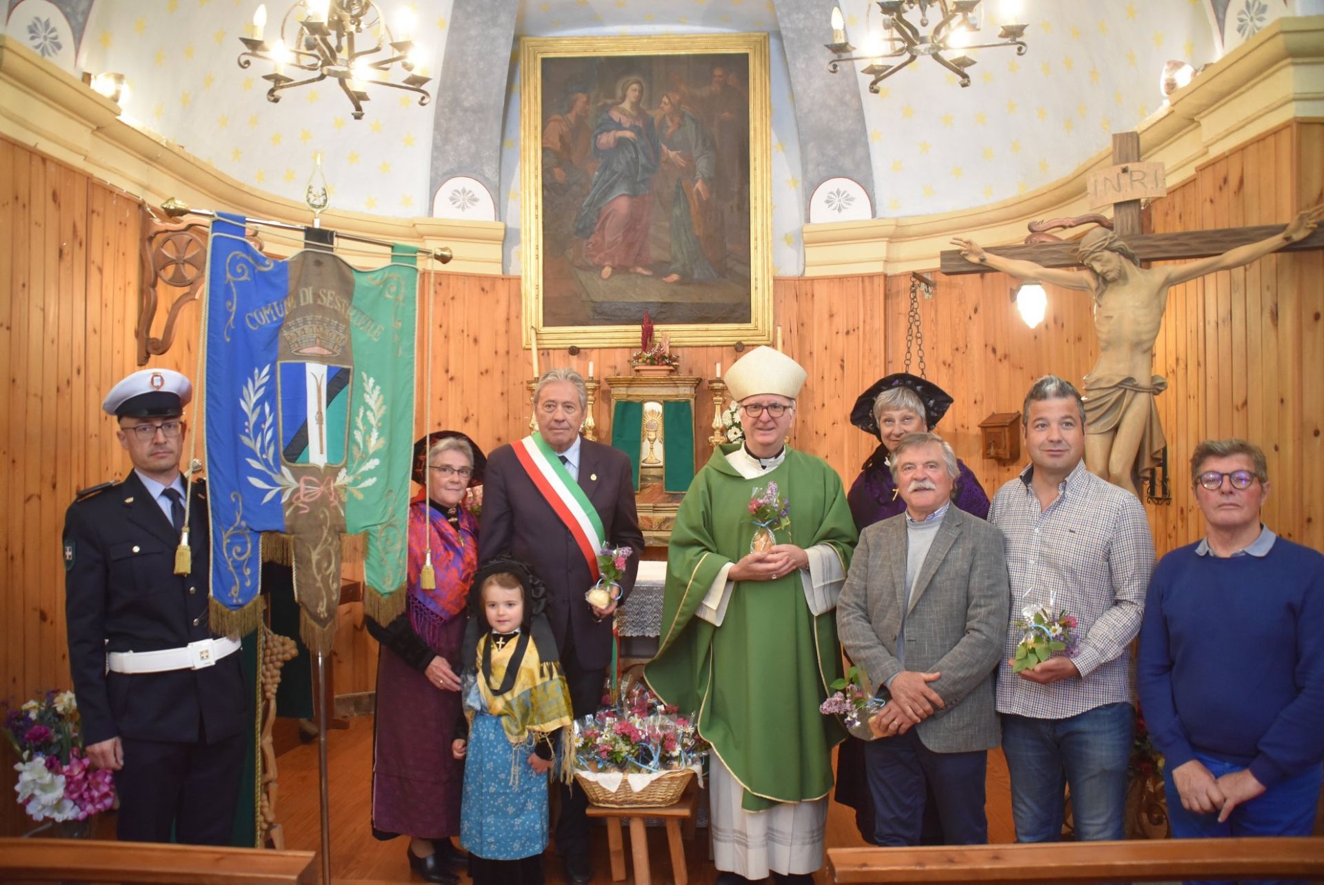 SESTRIERE – Domenica 2 luglio il Vescovo di Pinerolo, Monsignor Derio Olivero, è salito a Borgata Sestriere per celebrare la Santa Messa in occasione della Festa della Visitazione di Maria Vergine, rito officiato nell’antica cappella che risale al 1737. Ad accoglierlo sono stati il Sindaco di Sestriere, Gianni Poncet, il vicesindaco Francesco Rustichelli, l’assessore Maurizio Cantele ed il consigliere regionale Valter Marin, oltre ad una nutrita rappresentanza di fedeli.
