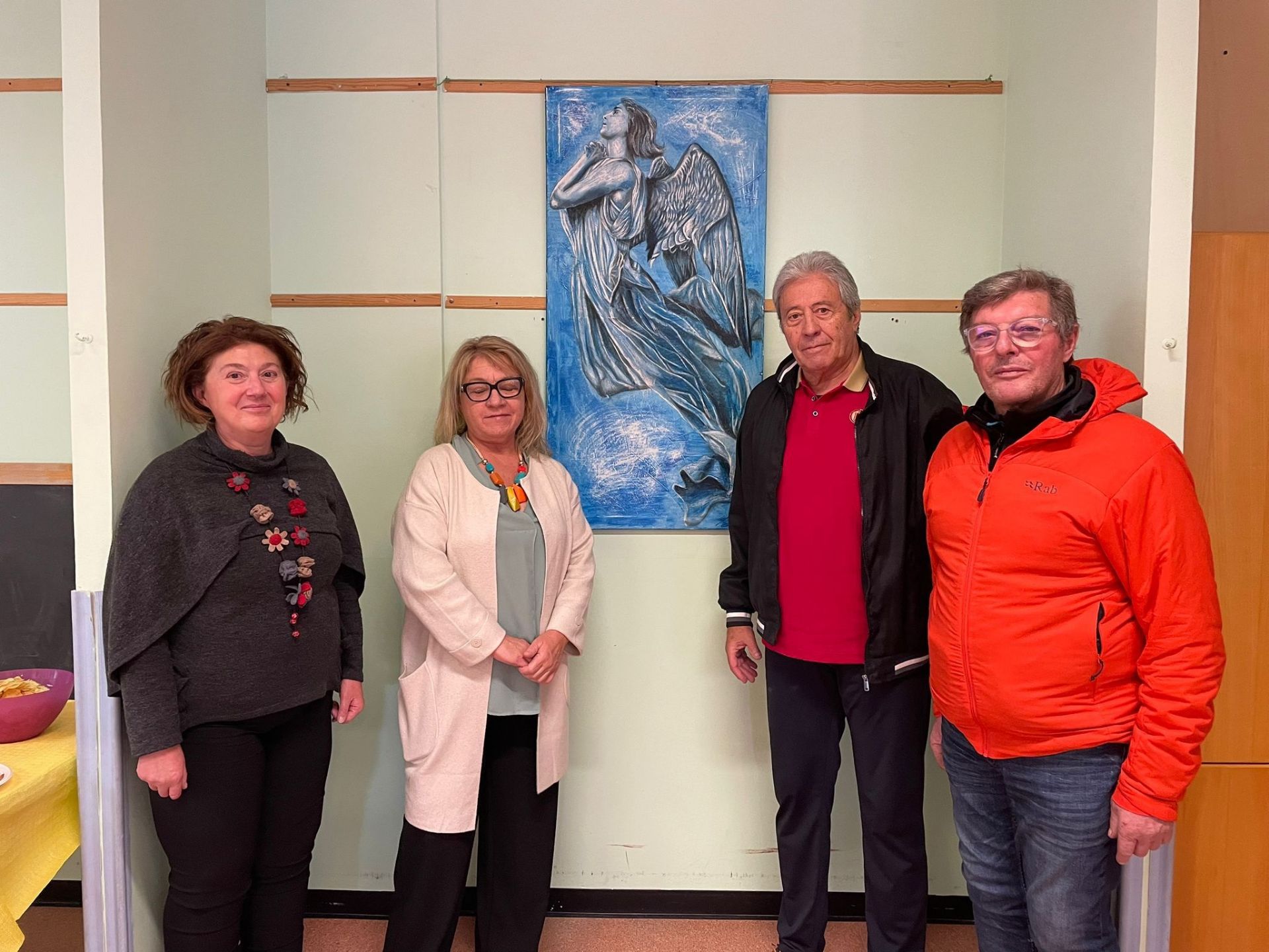Mariano Carrara, artista protagonista di una bellissima mostra personale la scorsa estate a Sestriere, ha avuto un pensiero anche per i più piccini realizzando uno splendido dipinto che ritrae un Angelo azzurro che il Comune di Sestriere ha consegnato, lo scorso 14 ottobre, alla Scuola Materna di Sestriere. "Siamo felici di aver consegnato oggi questa bellissima opera realizzata da Mariano Carrara che l’artista ha voluto donare a coloro che rappresentano il futuro di Sestriere ovvero i nostri cuccioli che frequentano la scuola materna di Sestriere” - hanno commentato il Sindaco di Sestriere, Gianni Poncet ed il vicesindaco, Maurizio Cantele.