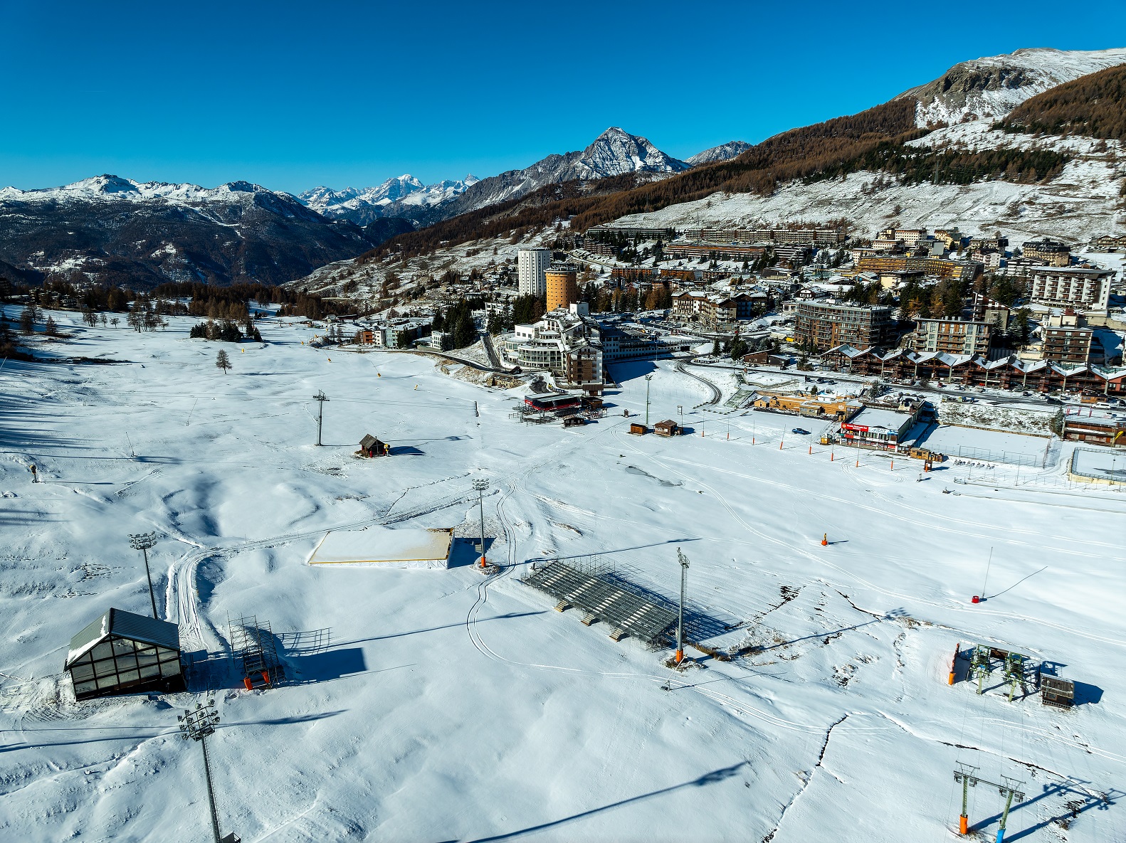 Dopo aver provveduto allo sfalcio dell’erba sui ripidi pendii della pista Kandahar Giovanni Alberto Agnelli, sono in fase di pre allestimento le strutture di base dedicate all’accoglienza nella zona che si affaccia sul parterre di arrivo. Nello specifico: una tribuna da oltre 750 posti, l’area hospitality al coperto ed altre strutture di servizio nonché le varie postazioni dedicate alla produzione televisiva che garantirà un’ampia copertura internazionale dell’evento.