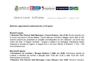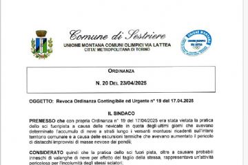 SESTRIERE - A completamento di quanto riportato sotto nel comunicato precedente, il Comune di...