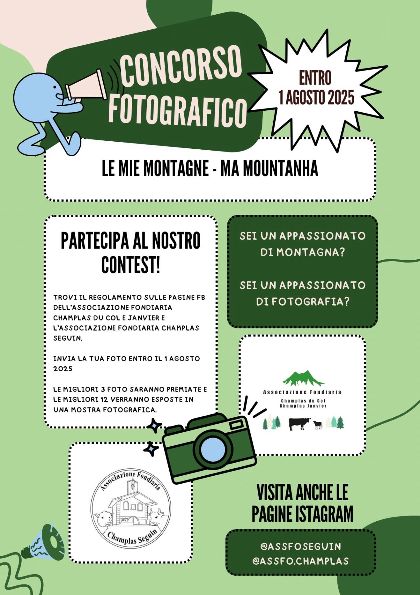 Le foto saranno inoltre esposte presso la sede dell'Associazione Fondiaria Champlas da agosto 2025. Le premiazioni si terranno sabato 23 agosto alle 16.30 nella medesima sede.