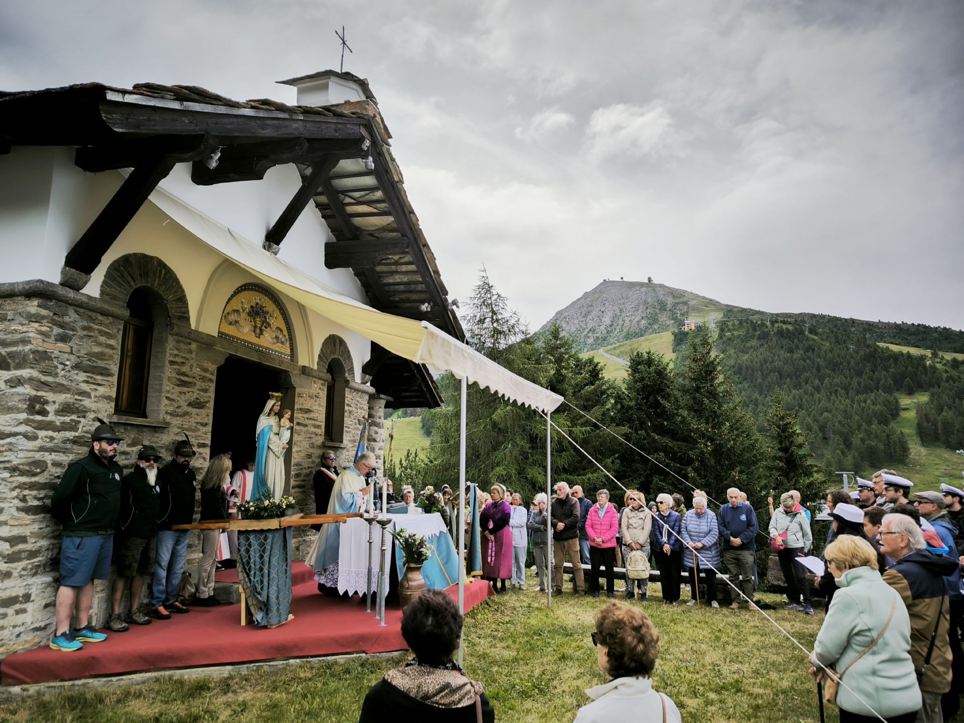 Don Giorgio Nervo ha celebrato la Santa Messa in onore della Madonnina Regina Pacis. Al termine della funzione religiosa è stato distribuito ai fedeli il pane benedetto in segno di pace e cordialità con il Sindaco Gianni Poncet che ha dichiarato - "La nostra collettività, che vive e lavora ai 2000 metri del comune più alto d'Italia, è una comunità da sempre credente. Per tutti i popoli la pace è un valore fondamentale e vederlo venire meno in diversi scenari nel mondo è davvero straziante. Speriamo che i potenti, le nazioni più rilevanti nello schacchiere internazionale, si rendano conto che, le loro contese, stanno rovinando il mondo ed il futuro dei giovani".