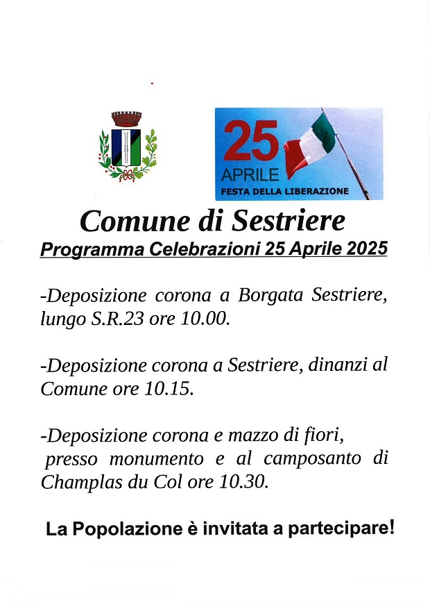 Ecco il progrmma delle celebrazioni del 25 aprile sul territorio del Comune di Sestriere
