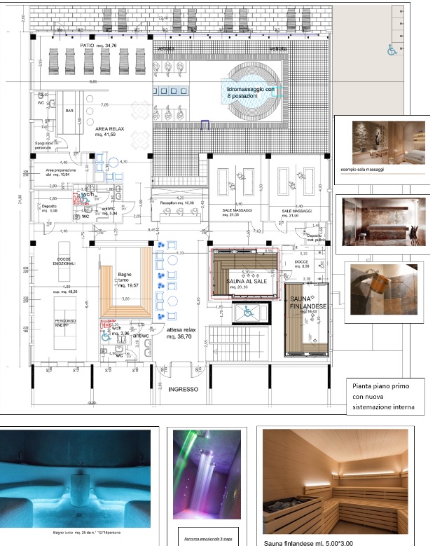 Totalmente ridisegnato l’interno dell’impianto comunale che sarà trasformato in una moderna spa con servizi wellness a prezioso supporto della comunità e delle strutture ricettive del territorio che potranno contare per i loro clienti di un rinnovato polo benessere e cura della persona al passo con i tempi. Un polo totalmente rinnovato con relativi servizi dedicati all’attività natatoria: vasche per il nuoto, acquaticità, punto ritrovo con bar-ristoro, area relax e percorso wellness.