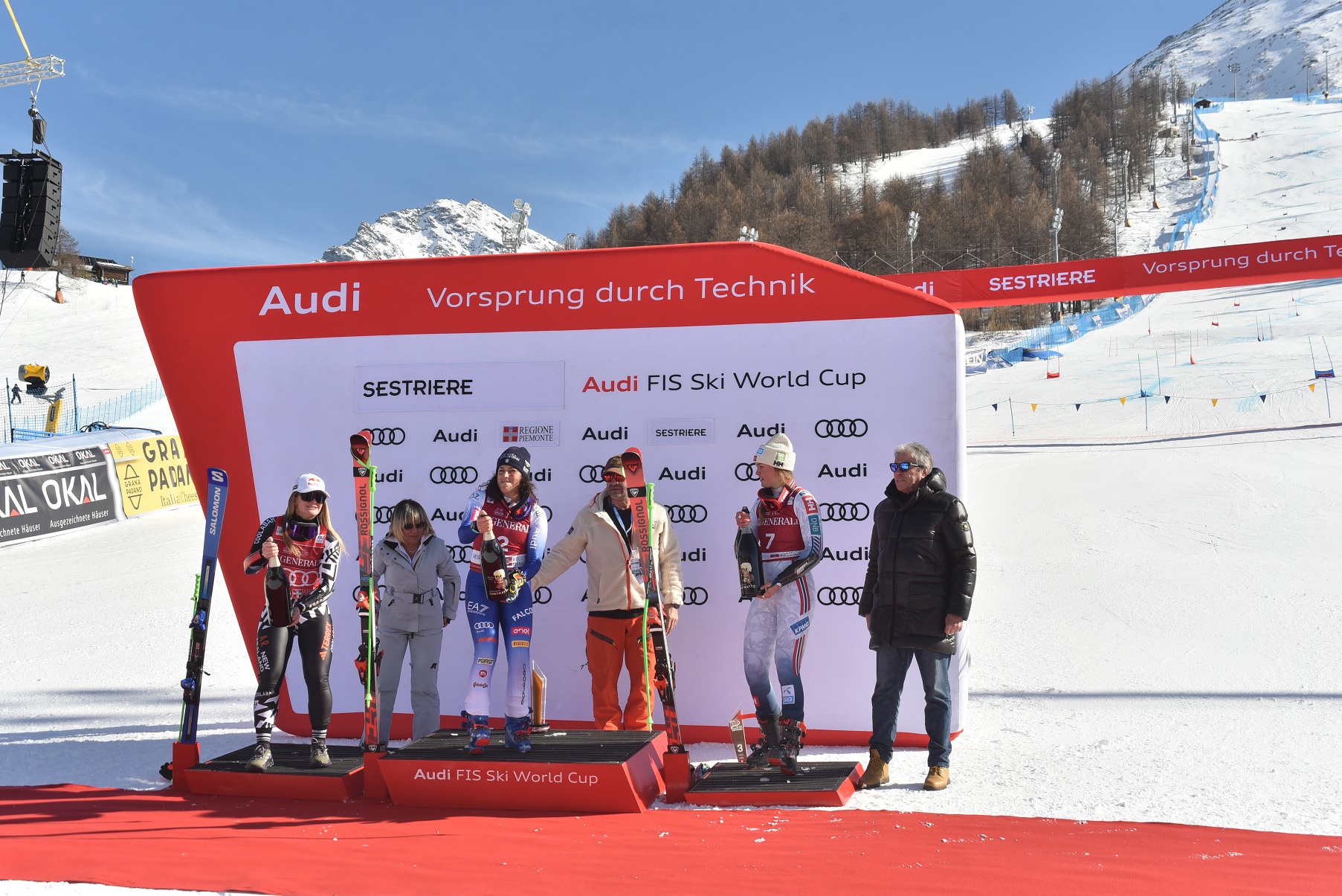 A premiare le atlete sul podio sono stati il Sindaco di Sestriere, Gianni Poncet, l’Assessore della Regione Piemonte, Marina Chiarelli, ed un acclamatissimo Alberto Tomba, tornato a Sestriere dopo le straordinarie imprese realizzate al Colle.