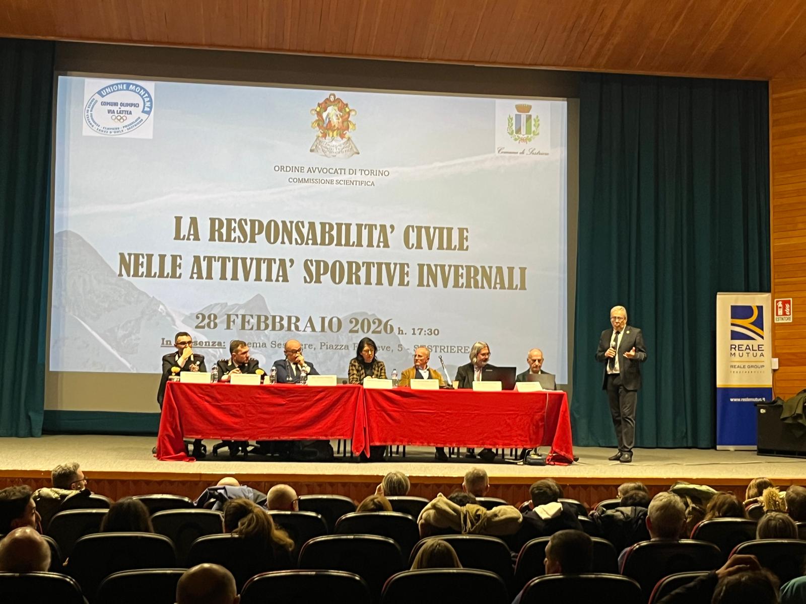 SESTRIERE - Grande partecipazione al convegno sulla "Responsabilità civile nelle attività sportive invernali" organizzato a Sestriere, nella sala del cinema Fraiteve, dalla commissione scientifica del'Ordine Avvocati di Torino. Il dibattito alla presenza di una platea di sciatori, gestori degli impianti e delle aree sciabili, istruttori, maestri di sci e noleggiatori di materiale, è stato patrocinato dall'Unione Montana Comuni Olimpici Via Lattea e dal Comune di Sestriere.